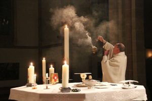 Inzens (Beweihräucherung) der Osterkerze nach der Gabenbereitung
