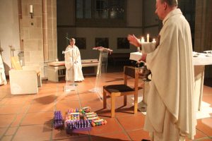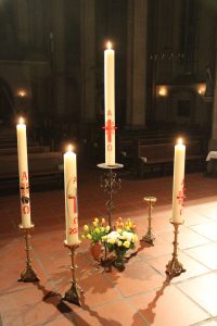 Die Osterkerzen der anderen Kirchorte werden am Licht der Osterkerze entzündet.
